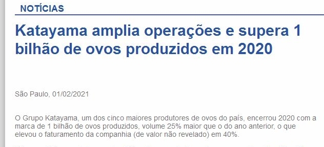 Katayama amplia operações e supera 1 bilhão de ovos produzidos em 2020