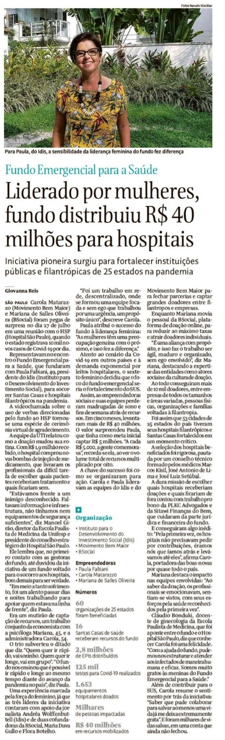 Liderado por mulheres, fundo distribuiu R$ 40 milhões para hospitais