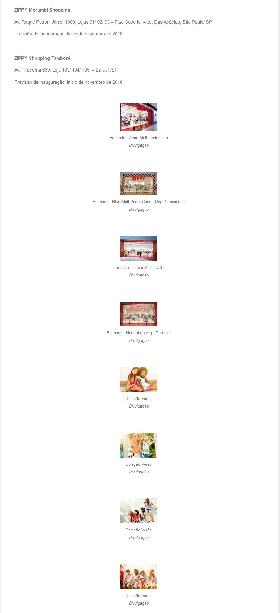 Marca de moda infantil ZIPPY inaugura duas lojas no Brasil