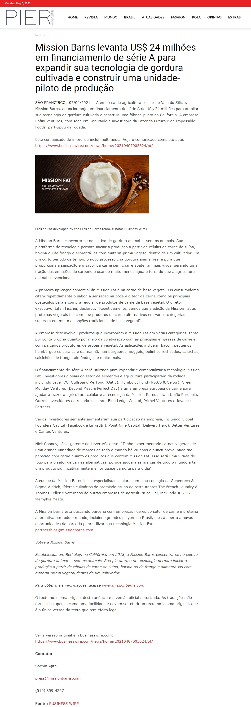 http://piermagazine.com/noticias-corporativas/?page_id=2204&releaseid=258463&title=Mission+Barns+levanta+US%24+24+milh%C3%B5es+em+financiamento+de+s%C3%A9rie+A+para+expandir+sua+tecnologia+de+gordura+cultivada+e+construir+uma+unidade-piloto+de+produ%C3%A7%C3%A3o