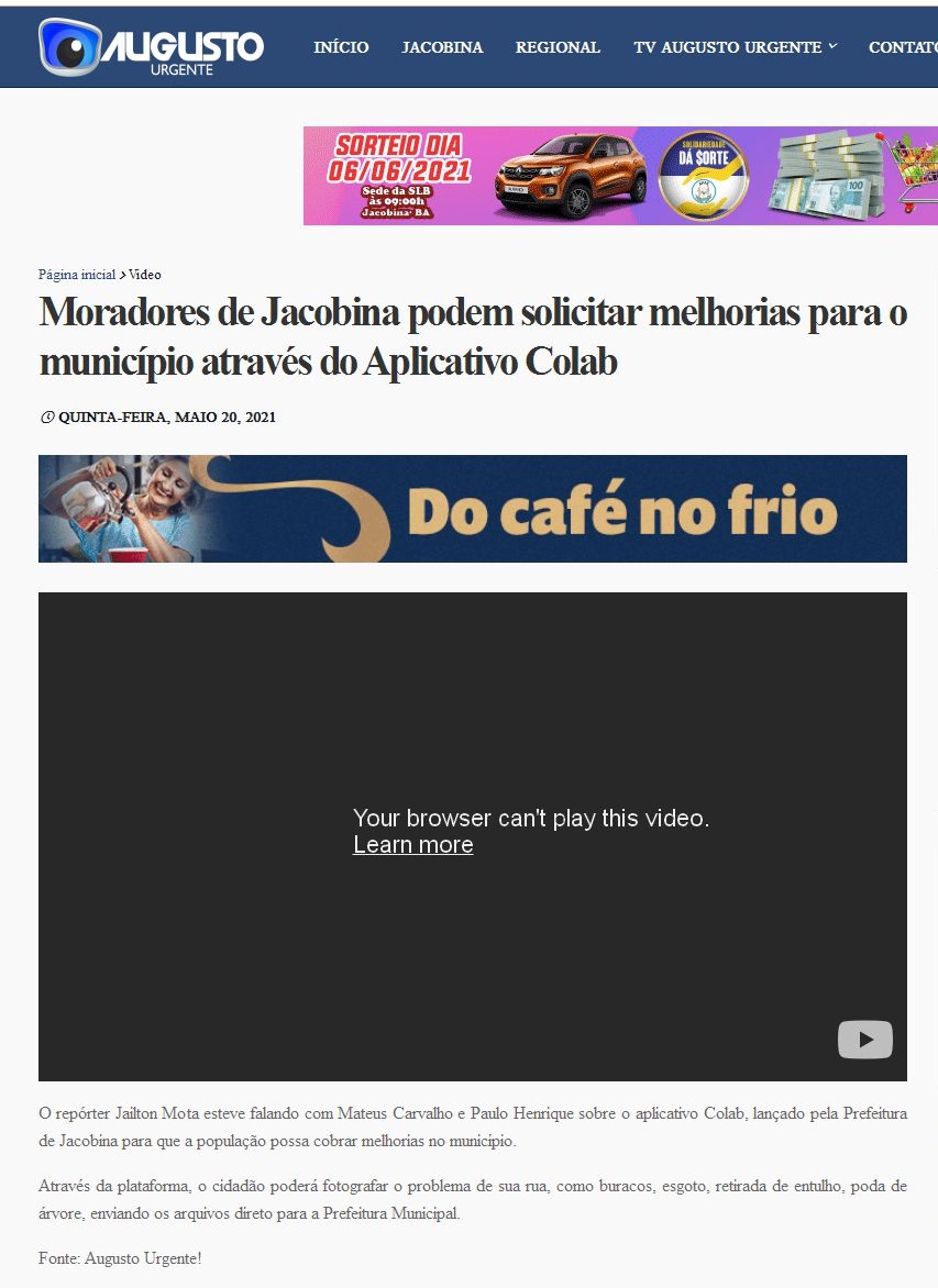 Moradores de Jacobina podem solicitar melhorias para o município através do Aplicativo Colab