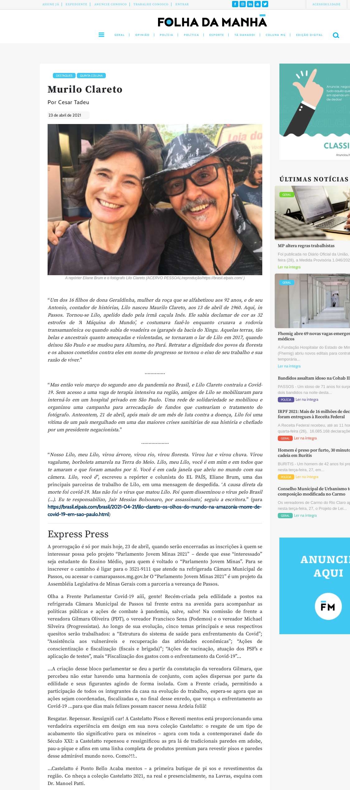 23/04/2021 - Folha da Manhã