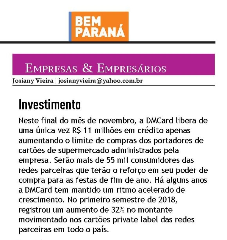 Na contramão do mercado, DMCard libera R$ 11 milhões em crédito aos portadores de cartões de supermercados