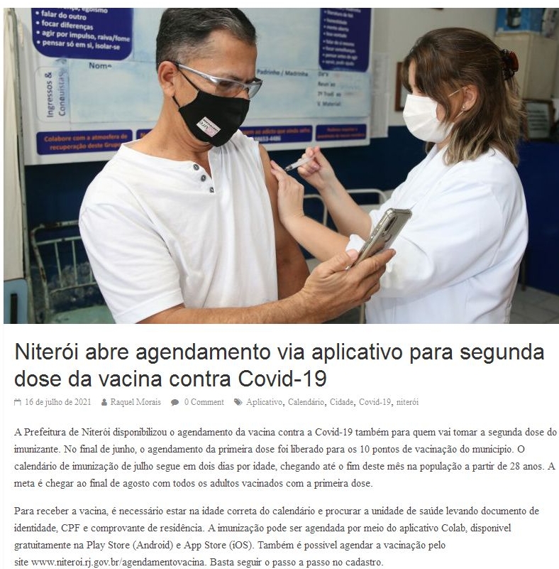 Niterói abre agendamento via aplicativo para segunda dose da vacina contra Covid-19