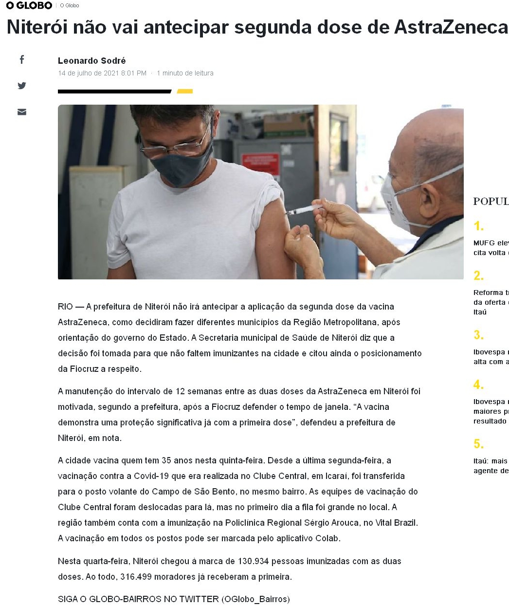 Niterói não vai antecipar segunda dose de AstraZeneca
