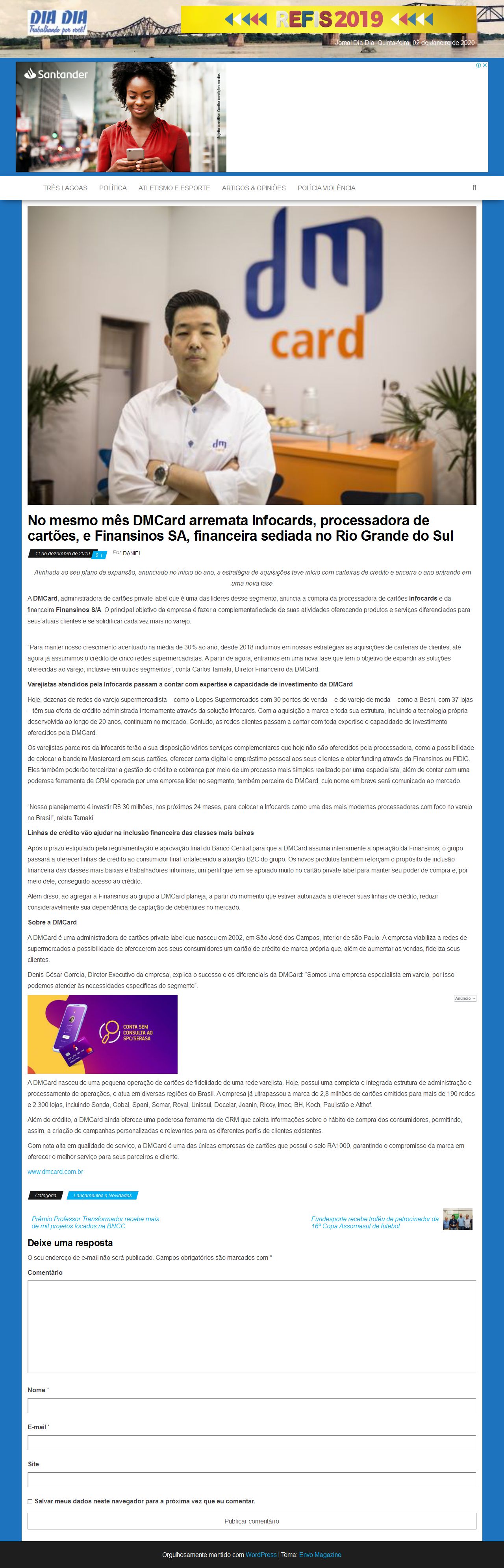 http://jornaldiadia.com.br/2019/2019/12/11/no-mesmo-mes-dmcard-arremata-infocards-processadora-de-cartoes-e-finansinos-sa-financeira-sediada-no-rio-grande-do-sul