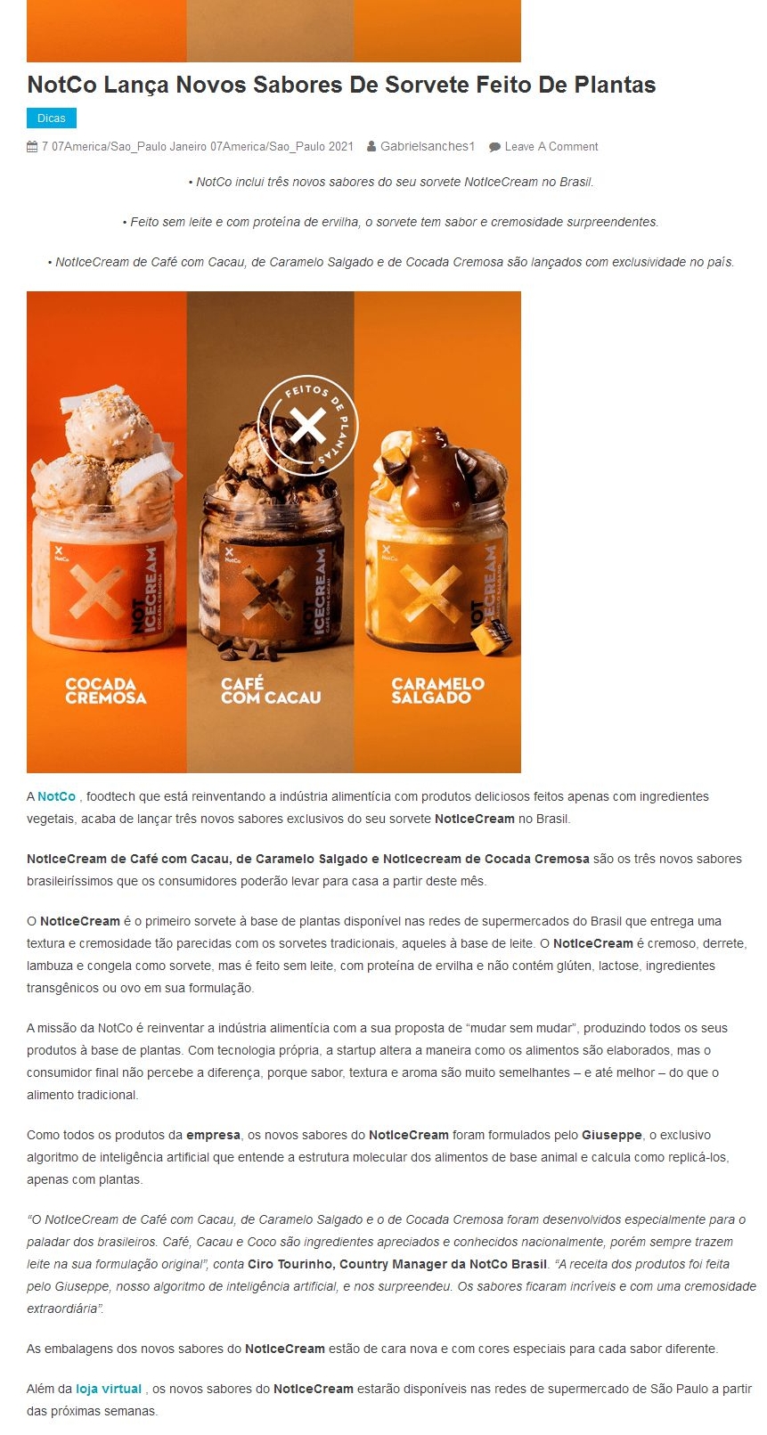 NotCo lança novos sabores de sorvete feito de plantas