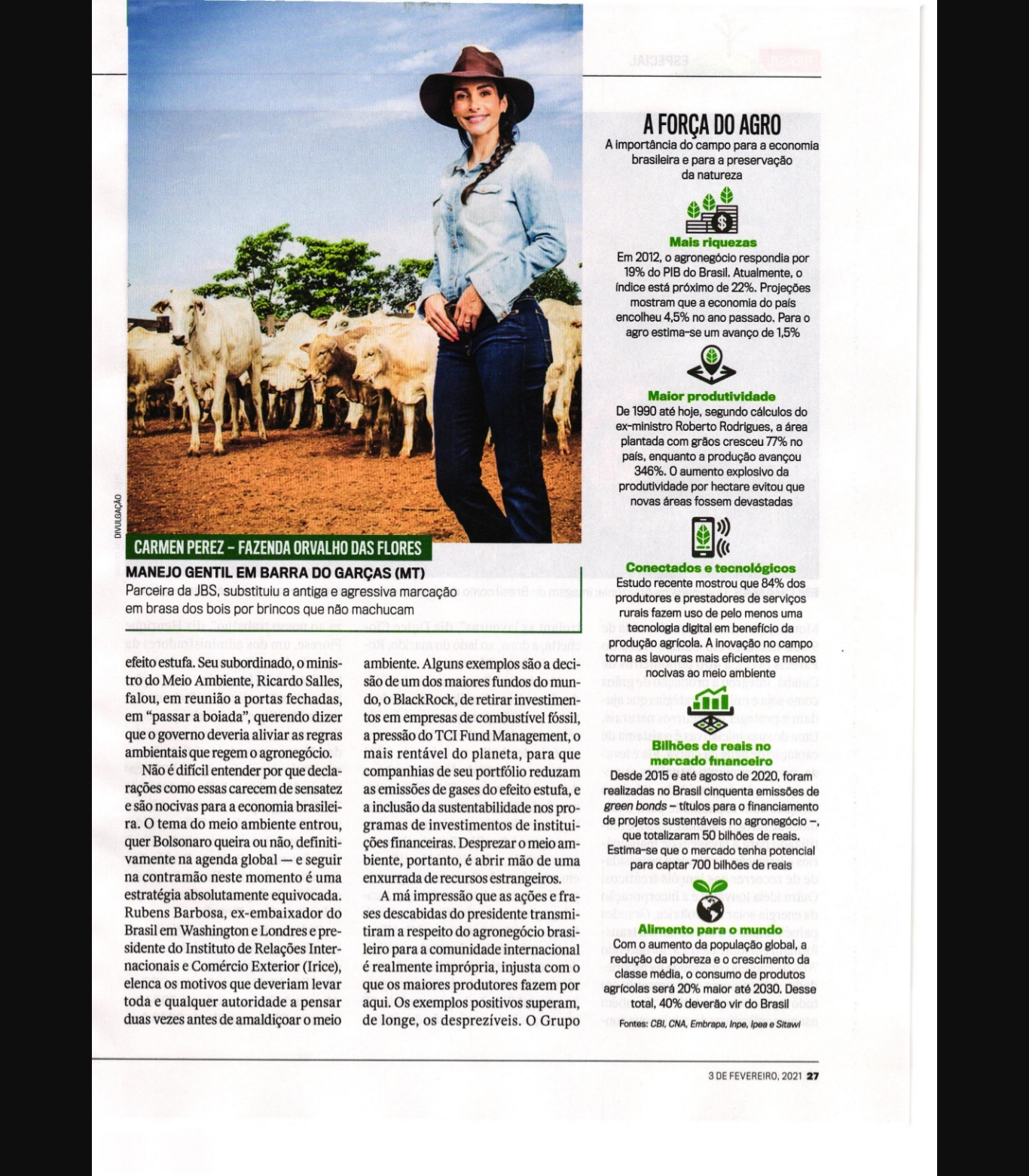 o mL o áo CARMEN PEREZ - FAZENDA ORVALHO DAS FLORES MANEJO GENTIL EM BARRA DO GARÇAS (MT)Parceira da JBS, substituiu a antiga e agressiva marcação em