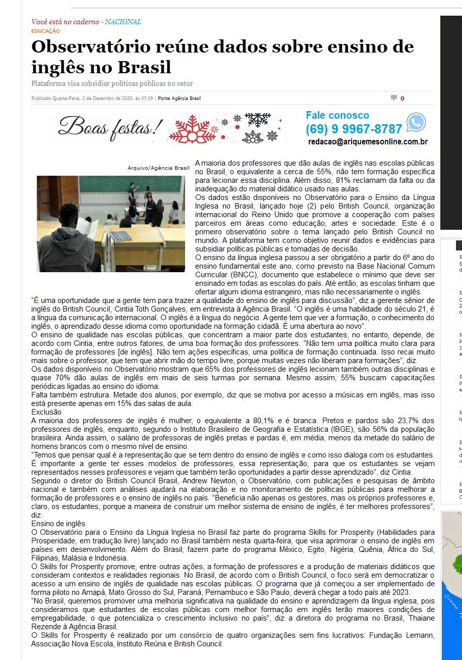 Observatório reúne dados sobre ensino de inglês no Brasil