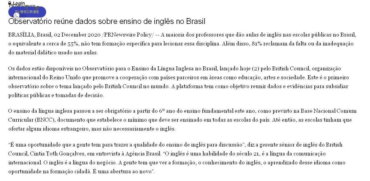 Observatório reúne dados sobre ensino de inglês no Brasil