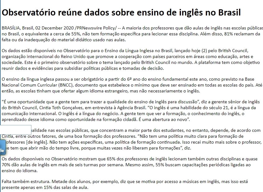 Observatório reúne dados sobre ensino de inglês no Brasil