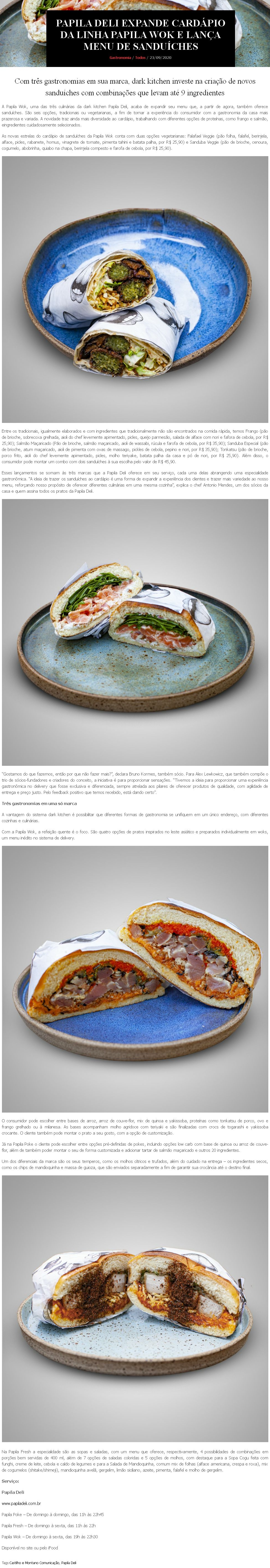 Papila Deli expande cardápio da linha Papila Wok e lança menu de sanduíches