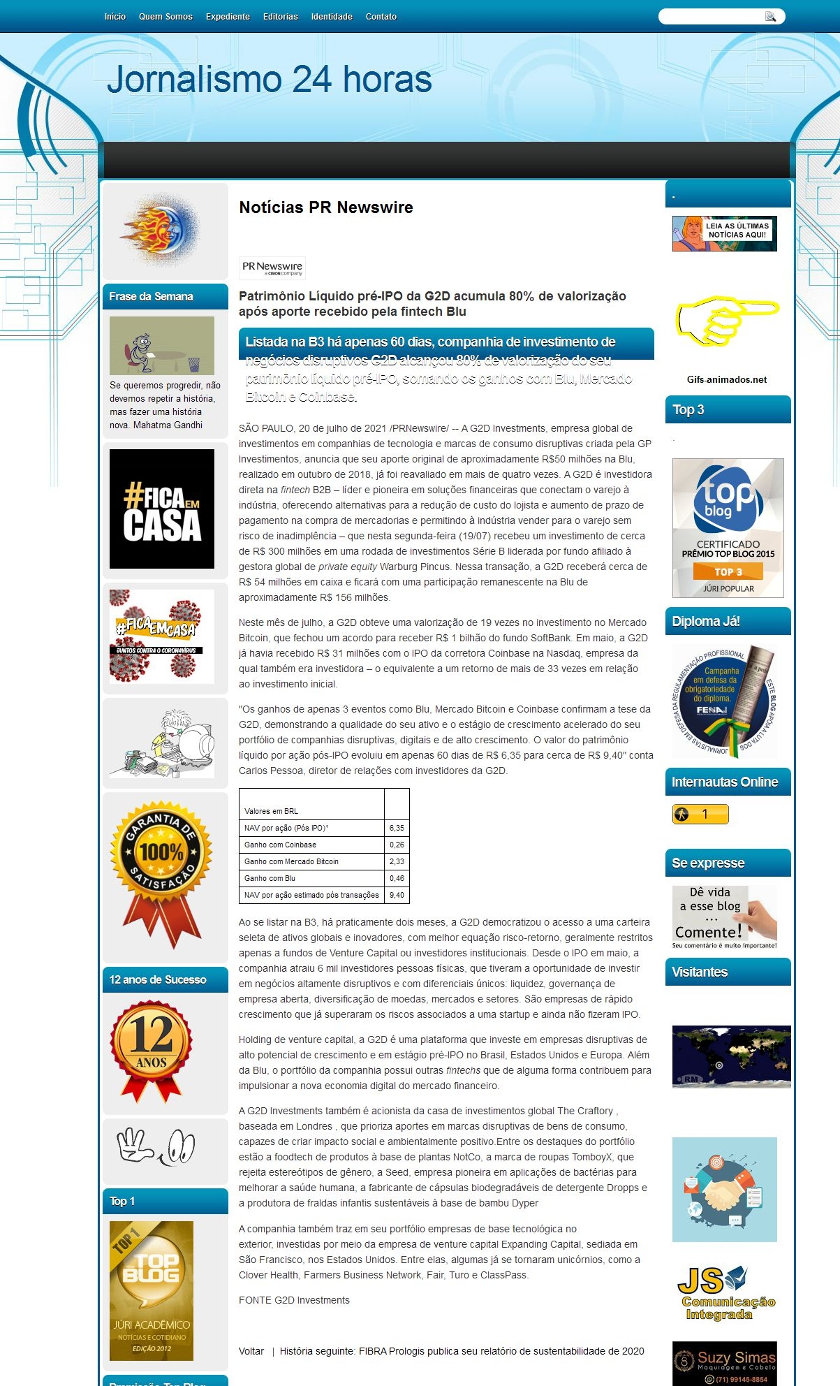 Patrimônio Líquido pré-IPO da G2D acumula 80% de valorização após aporte recebido pela fintech Blu