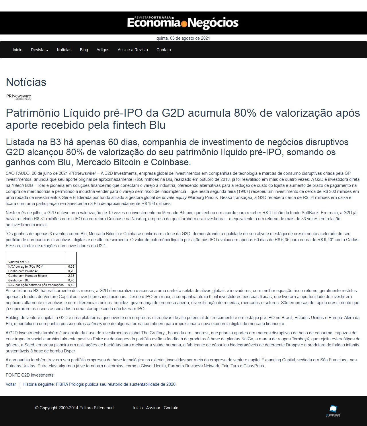 Patrimônio Líquido pré-IPO da G2D acumula 80% de valorização após aporte recebido pela fintech Blu