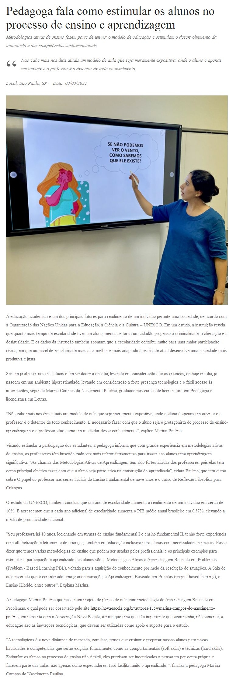 Pedagoga fala como estimular os alunos no processo de ensino e aprendizagem