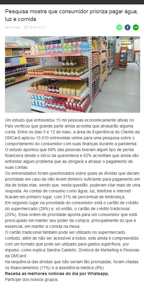 Pesquisa mostra que consumidor prioriza pagar água, luz e comida