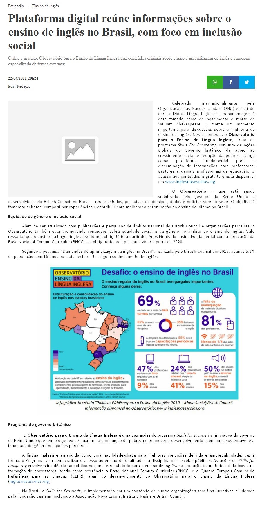 Plataforma digital reúne informações sobre o ensino de inglês no Brasil, com foco em inclusão social