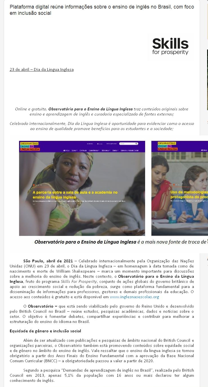 Plataforma digital reúne informações sobre o ensino de inglês no Brasil, com foco em inclusão social