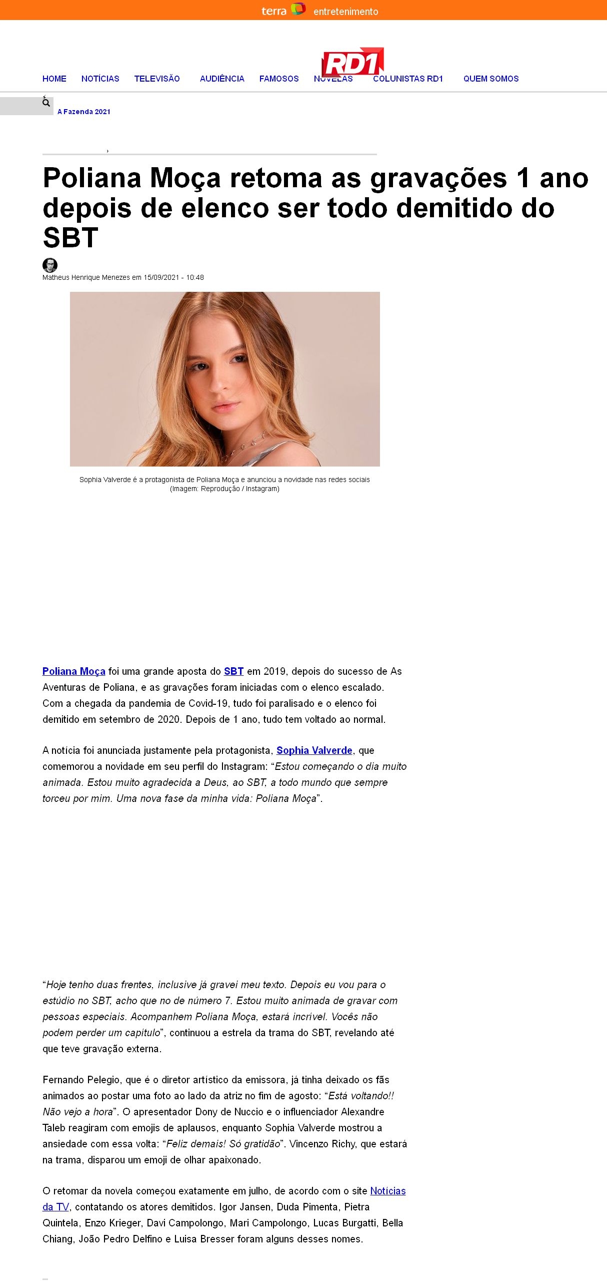 Poliana Moça retoma as gravações 1 ano depois de elenco ser todo demitido do SBT