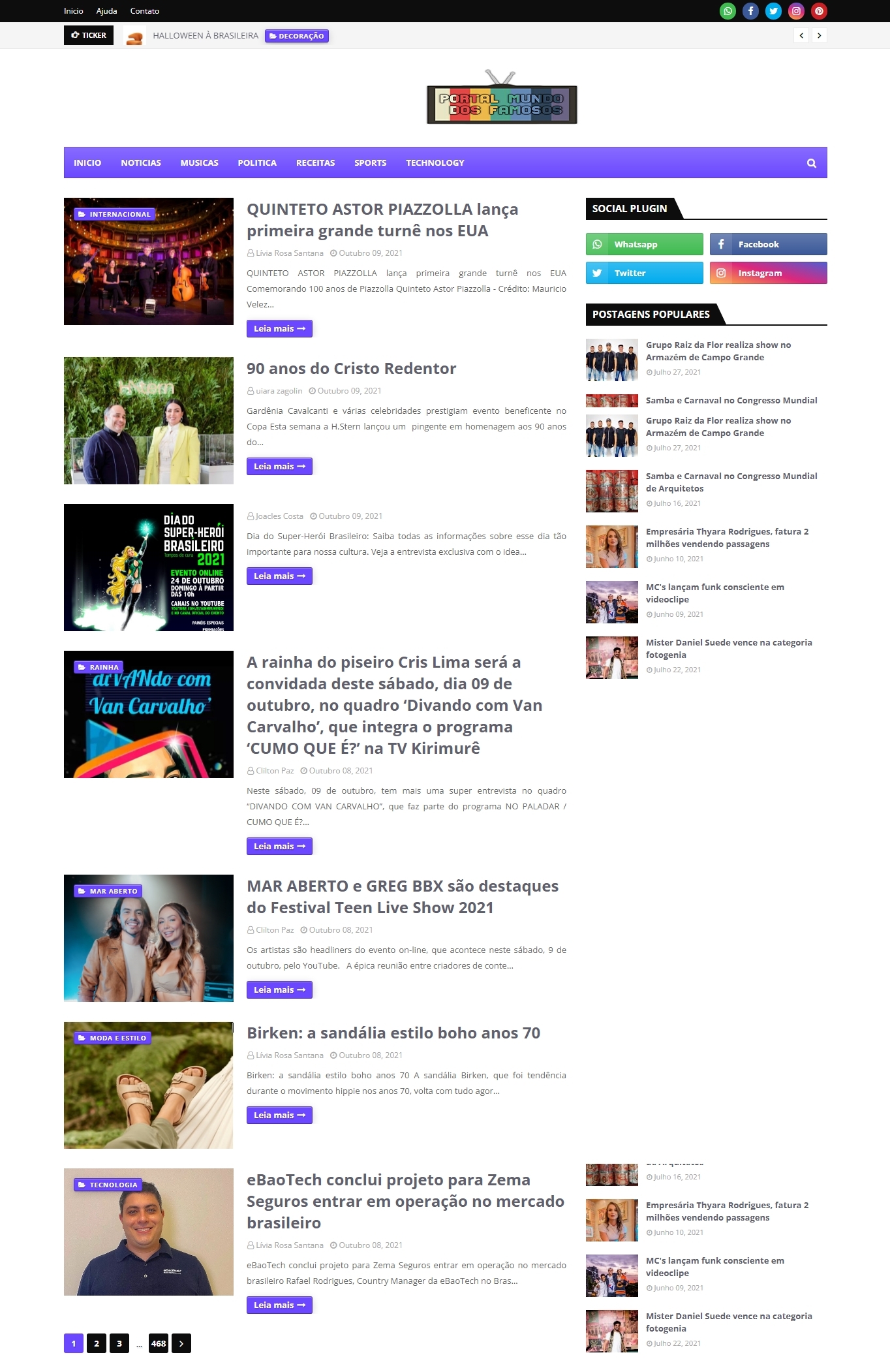 09/10/2021 - Portal Mundo dos Famosos