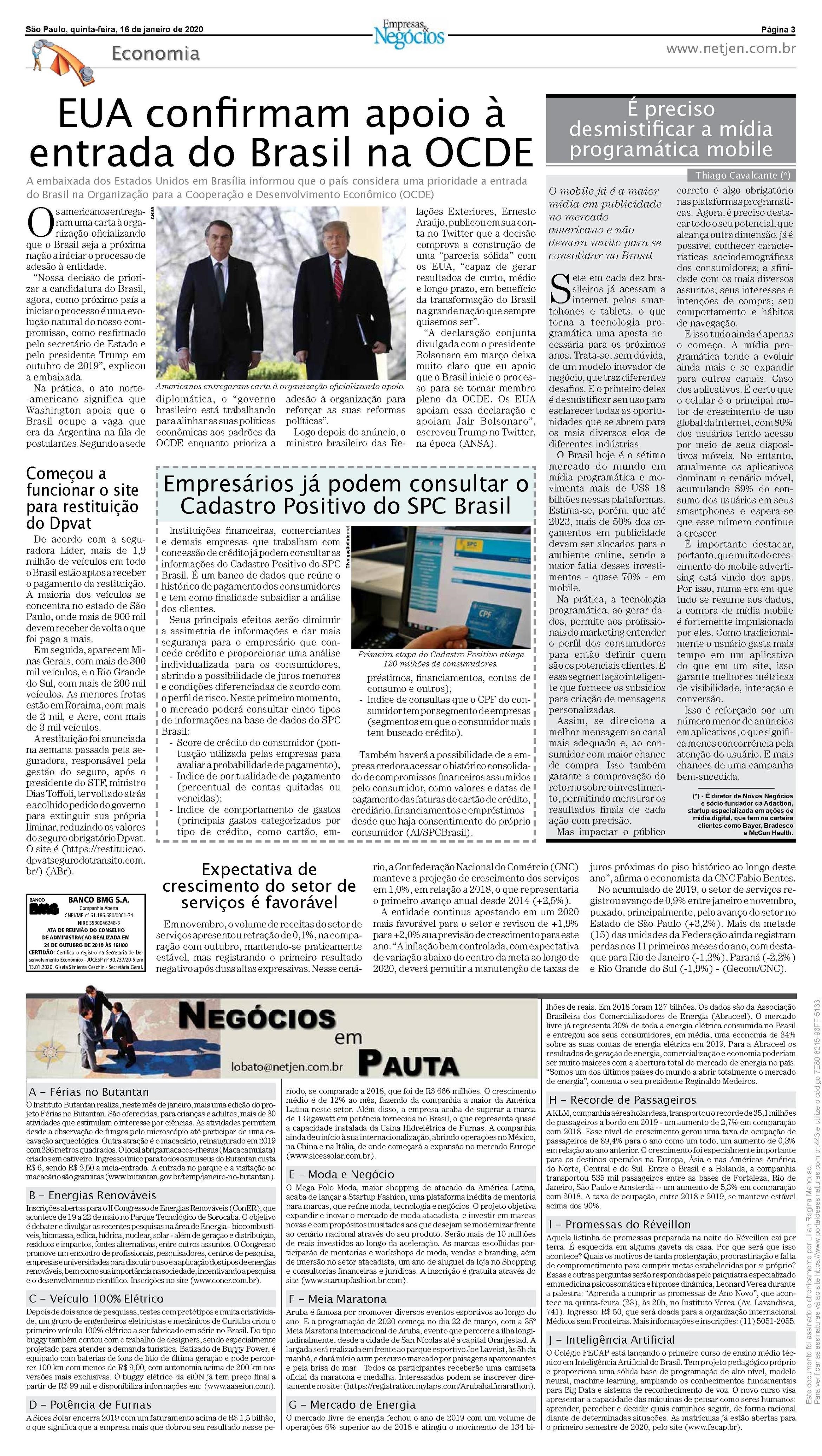 16/01/2020 - Empresas & Negócios