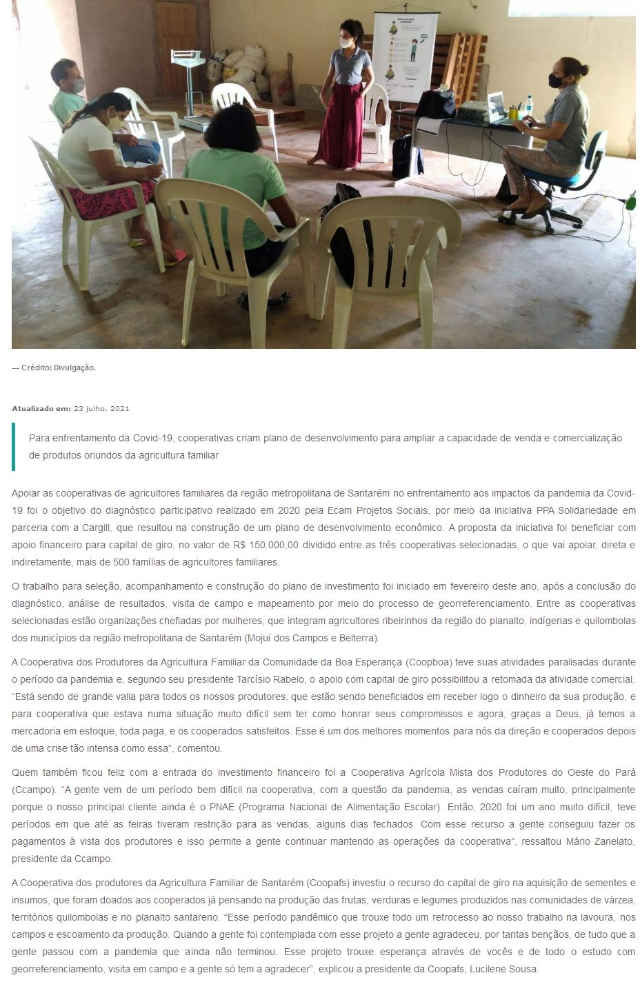 PPA Solidariedade faz aporte de R$ 150 mil para o fortalecimento de cooperativas de agricultura familiar em Santarém