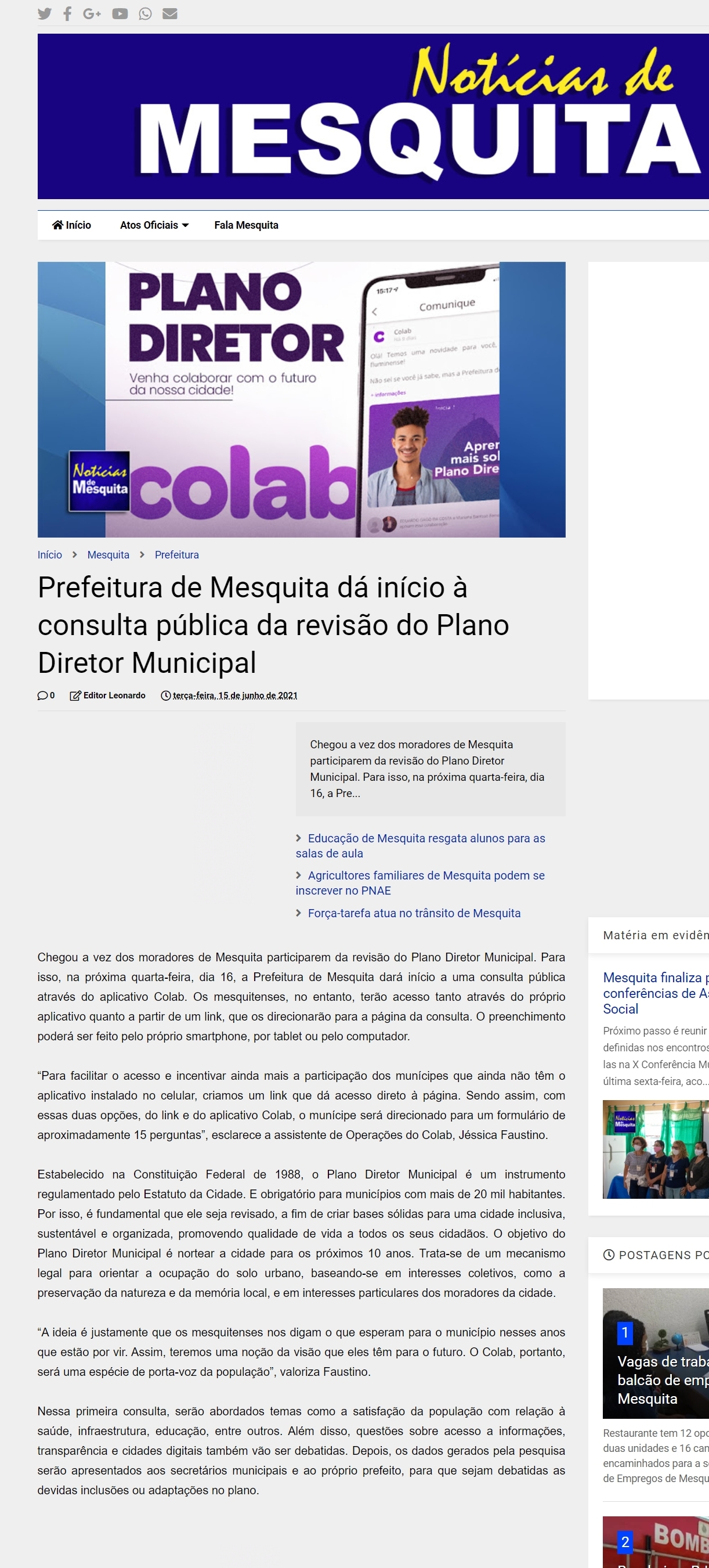 15/06/2021 - Notícias de Mesquita