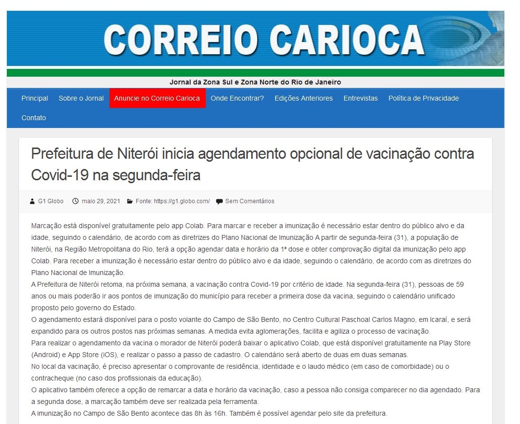 29/05/2021 - Correio Carioca – Das Zonas Norte e Sul