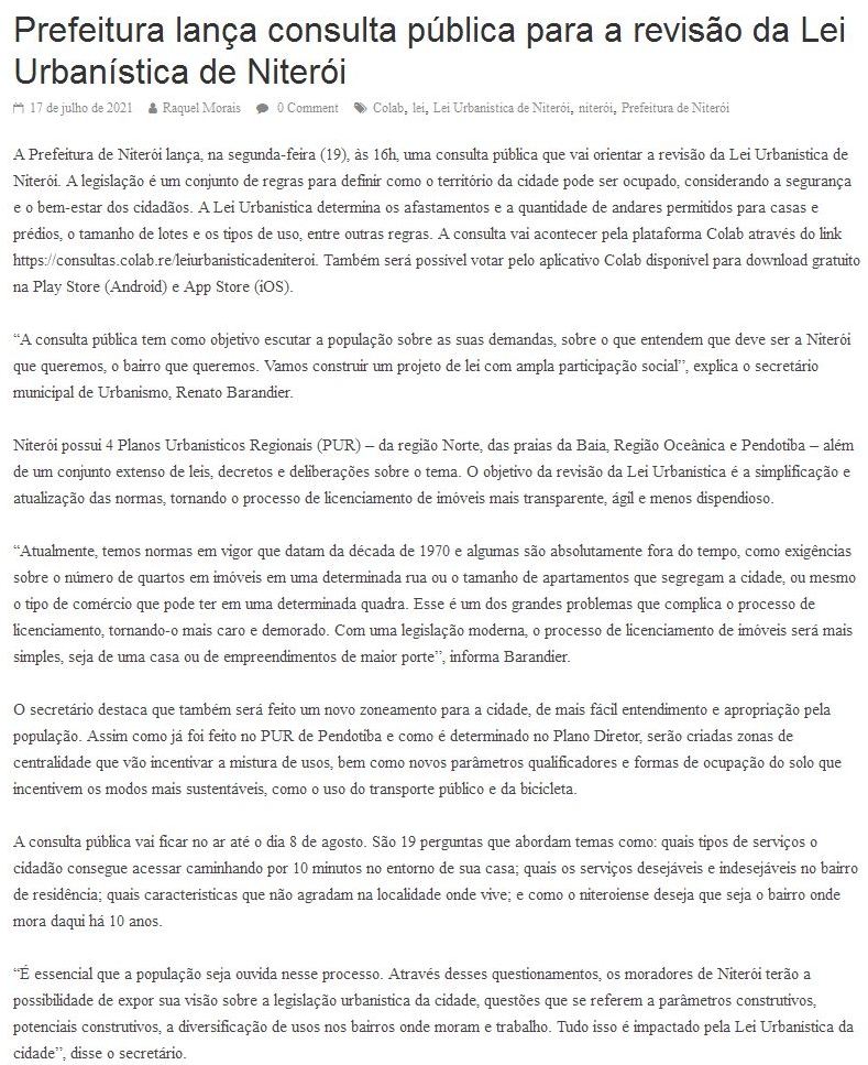 Prefeitura lança consulta pública para a revisão da Lei Urbanística de Niterói