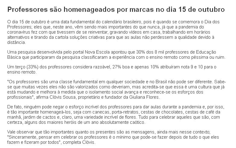 Professores são homenageados por marcas no dia 15 de outubro