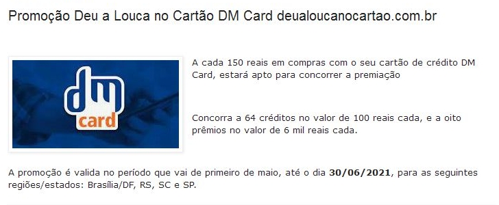 Promoção Deu a Louca no Cartão DMCard