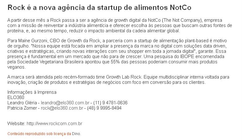 Rock é a nova agência da startup de alimentos NotCo