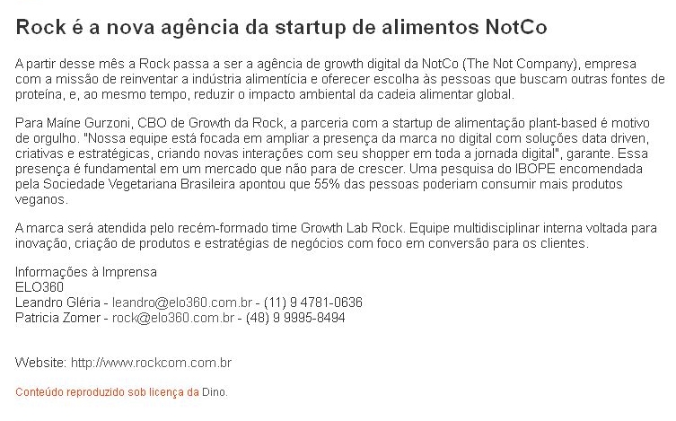 Rock é a nova agência da startup de alimentos NotCo
