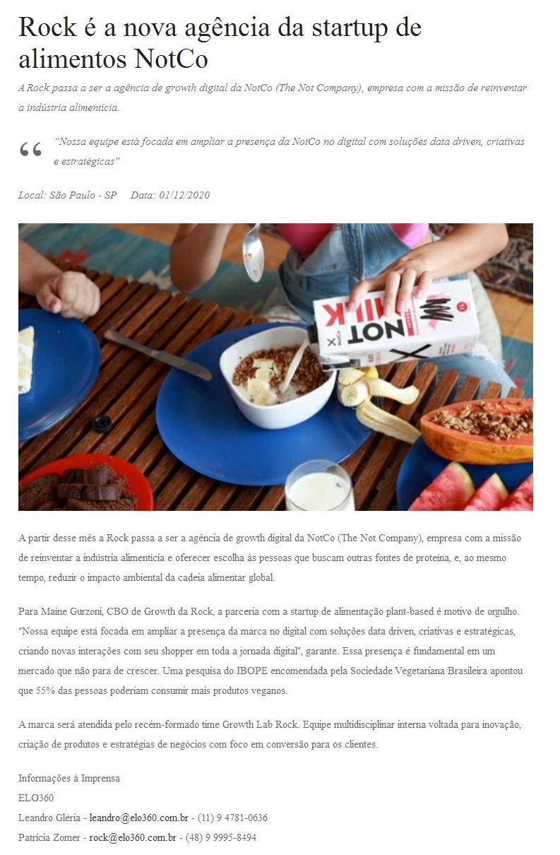 Rock é a nova agência da startup de alimentos NotCo