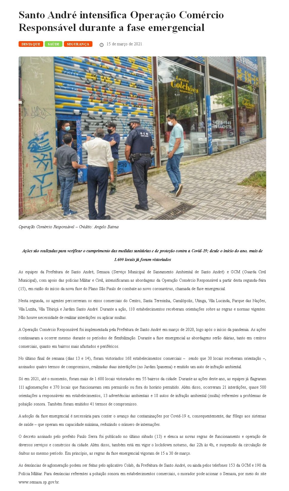 Santo André intensifica Operação Comércio Responsável durante a fase emergencial