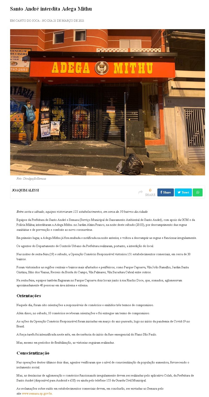 Santo André interdita Adega Mithu
