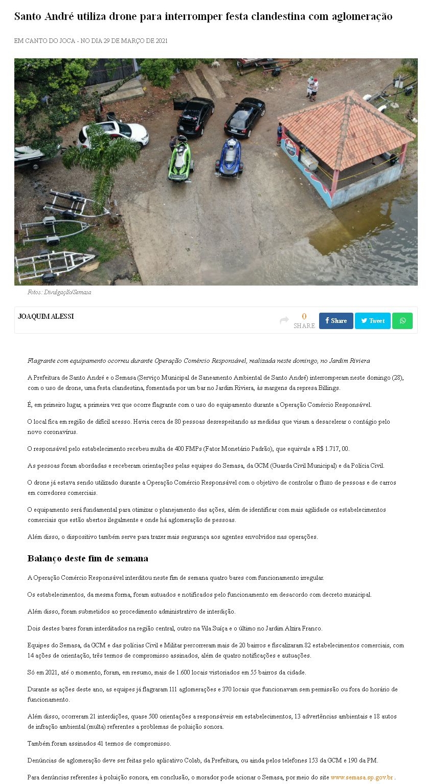 Santo André utiliza drone para interromper festa clandestina com aglomeração