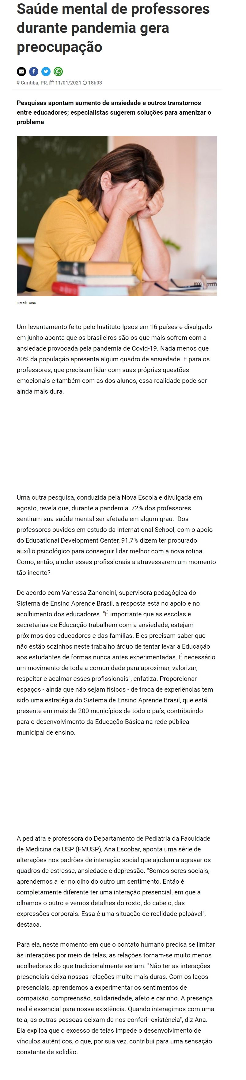 Saúde mental de professores durante pandemia gera preocupação