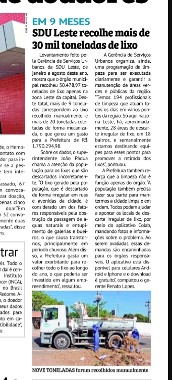 SDU Leste recolhe mais de 30 mil toneladas de lixo
