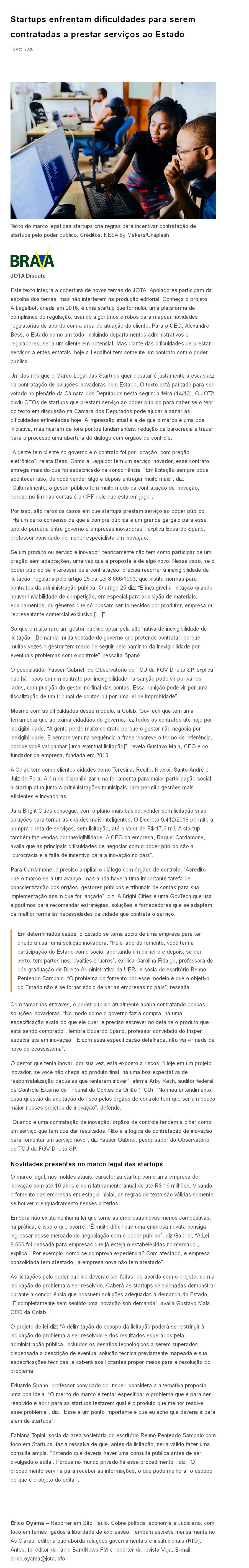 Startups enfrentam dificuldades para serem contratadas a prestar serviços ao Estado