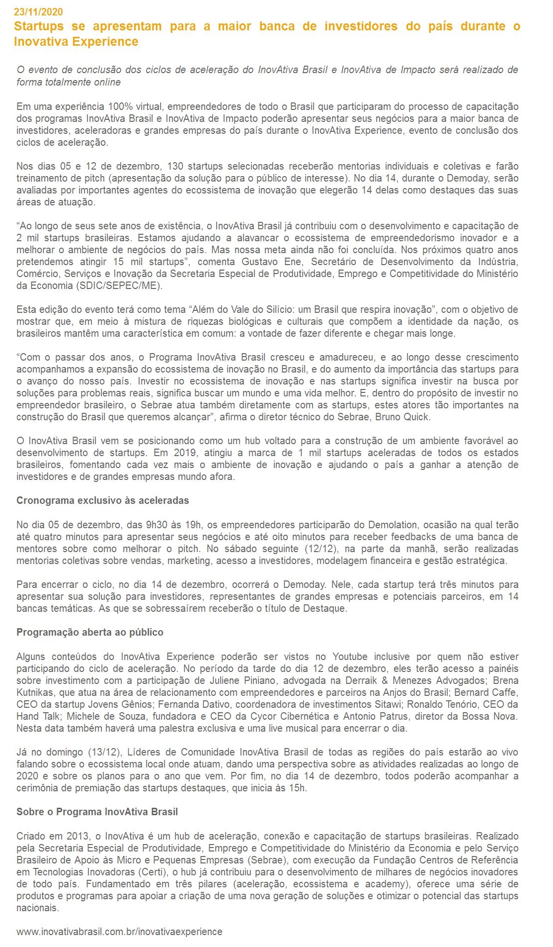 23/11/2020 - Feiras do Brasil