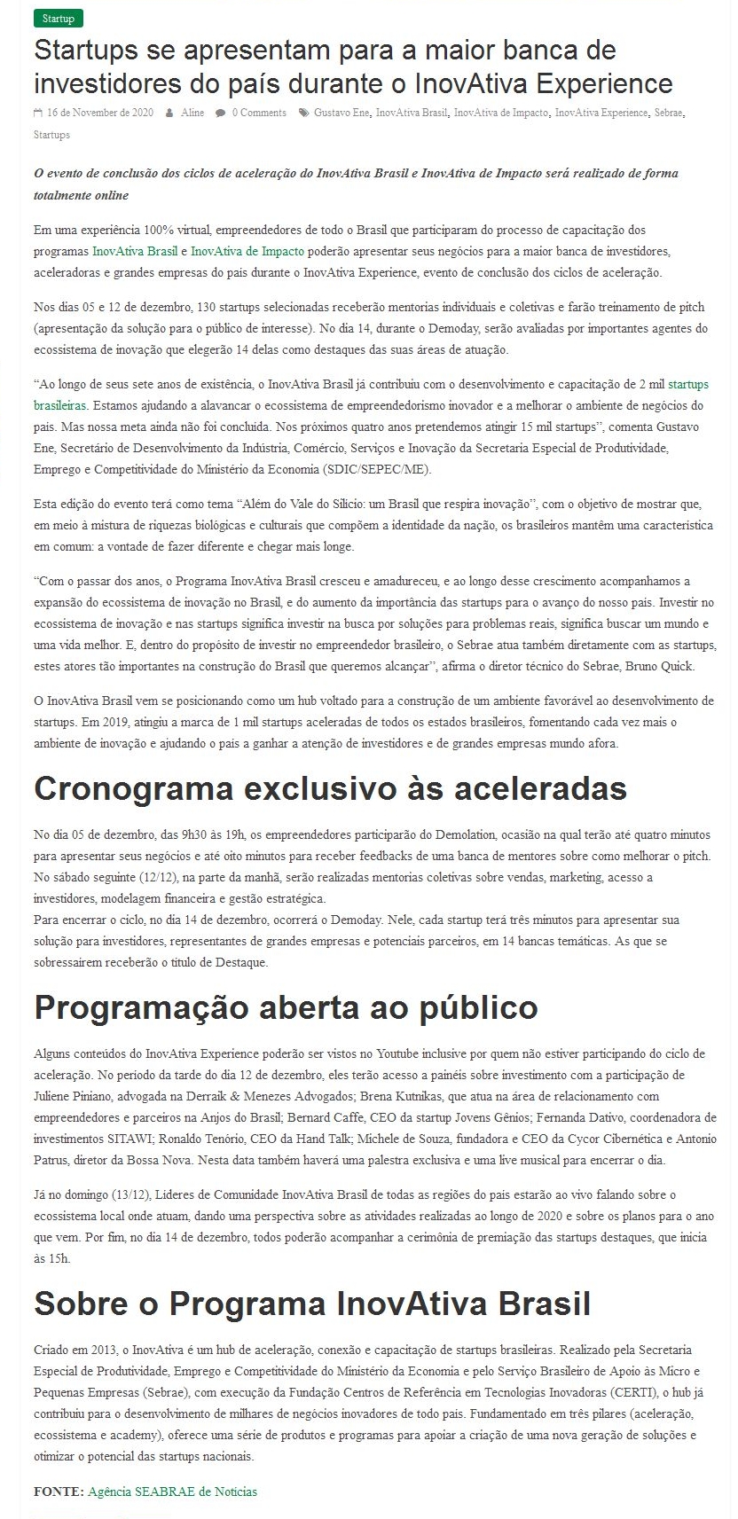 16/11/2020 - Inteligência e Inovação