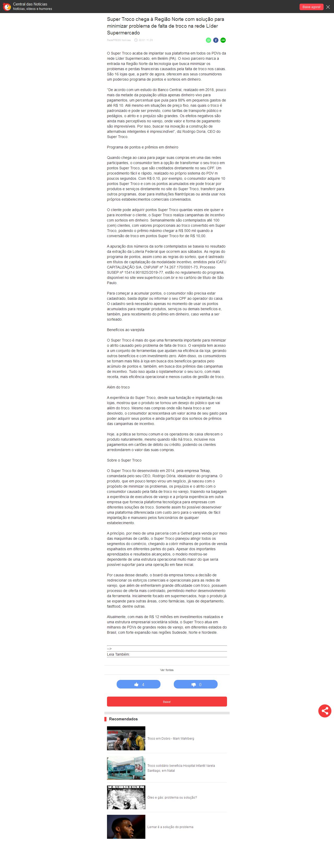 Super Troco chega à Região Norte com solução para minimizar problema de falta de troco na rede Líder Supermercado