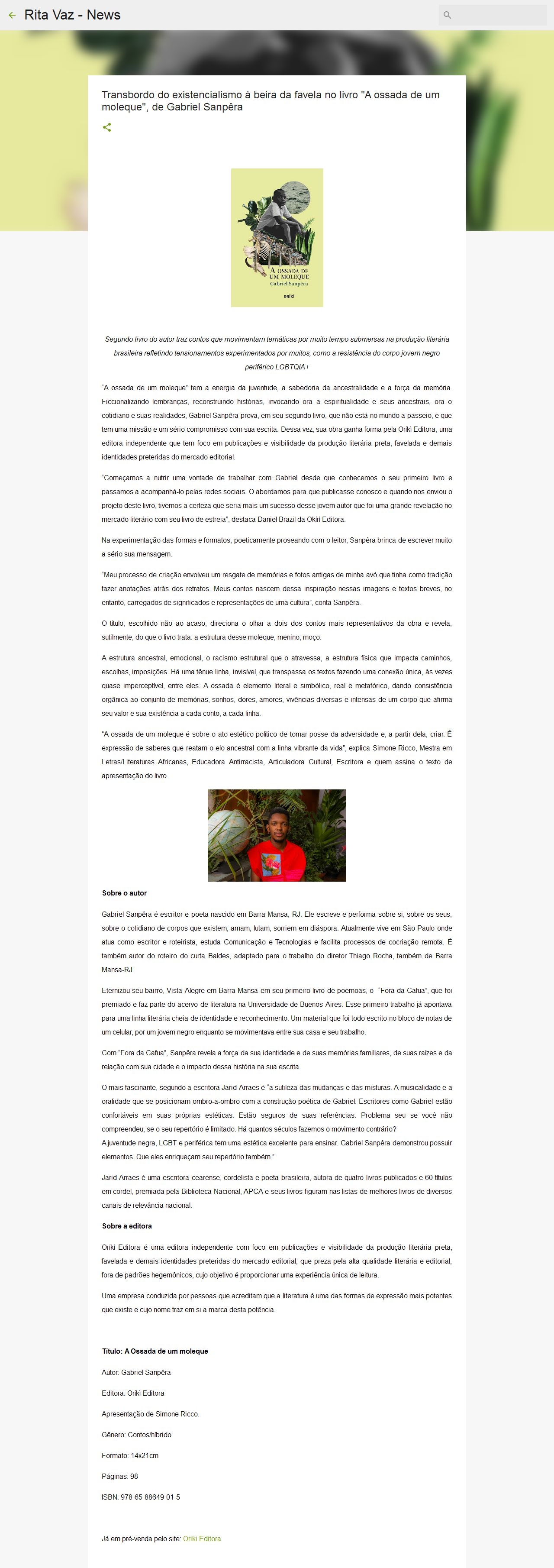 Transbordo do existencialismo à beira da favela no livro "A ossada de um moleque", de Gabriel Sanpêra