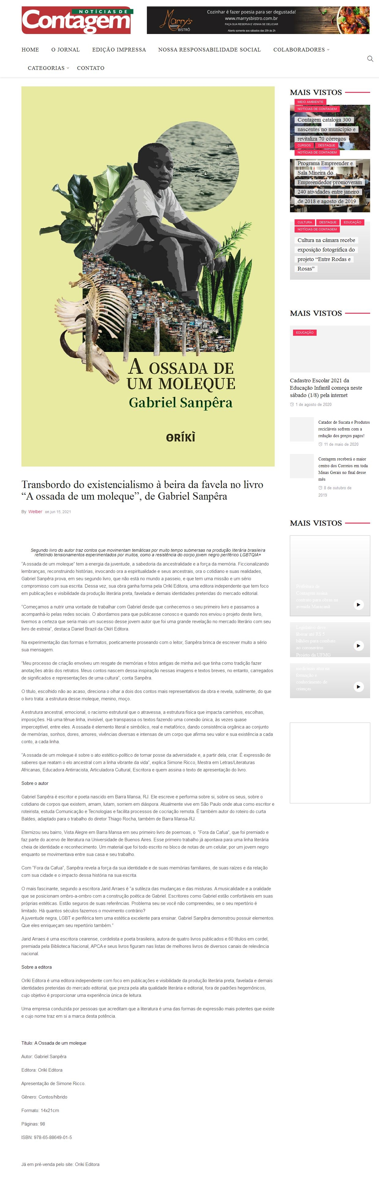 Transbordo do existencialismo à beira da favela no livro “A ossada de um moleque”, de Gabriel Sanpêra