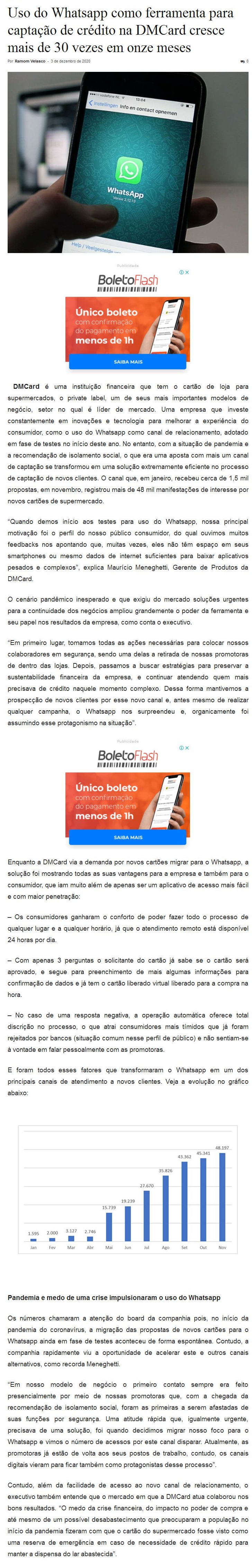 Uso do Whatsapp como ferramenta para captação de crédito na DMCard cresce mais de 30 vezes
