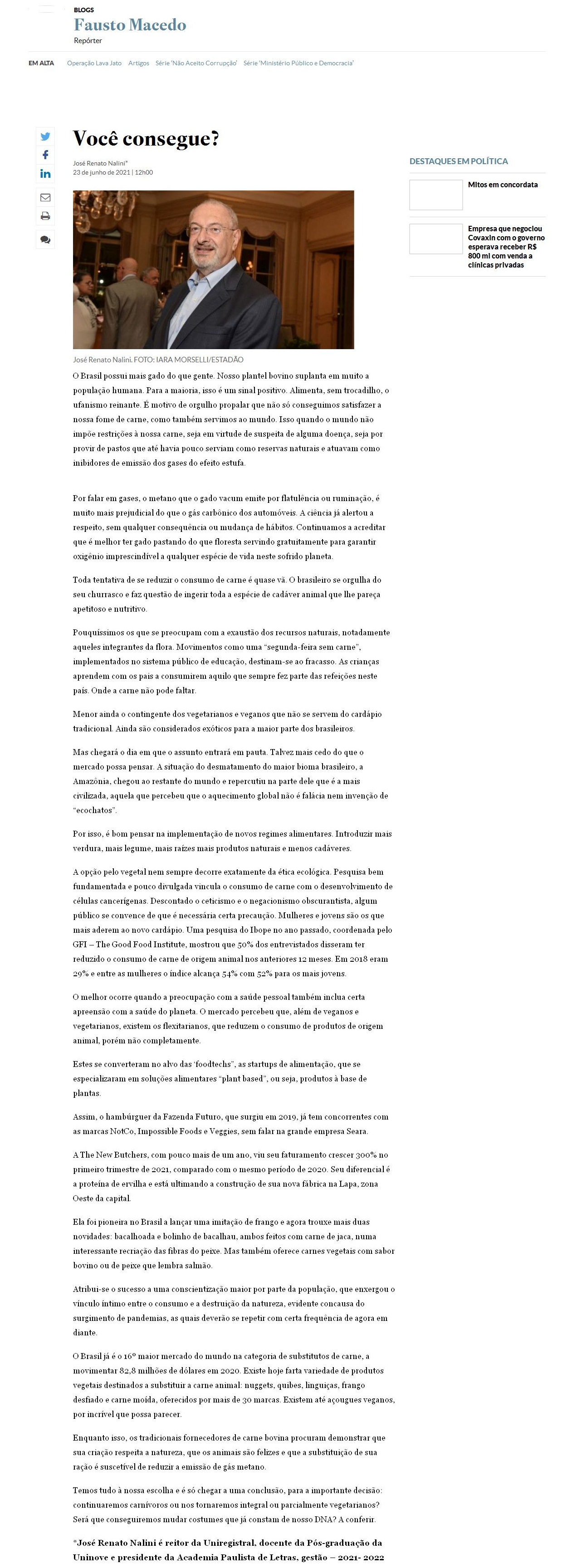 23/06/2021 - Estadão - Blog Fausto Macedo