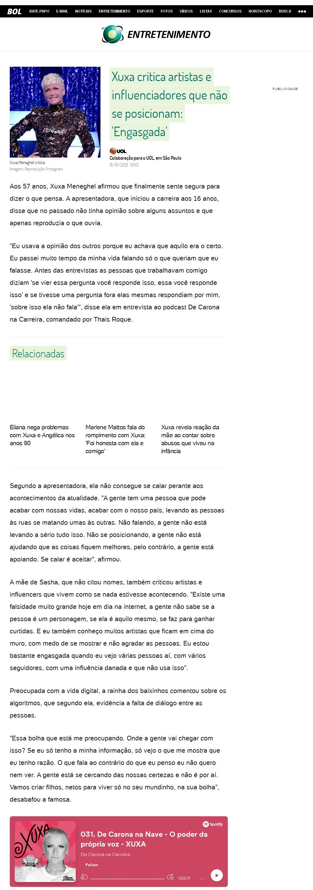 https://www.bol.uol.com.br/entretenimento/2021/01/15/xuxa-critica-famosos-e-influenciadores-que-nao-se-posicionam-engasgada.htm