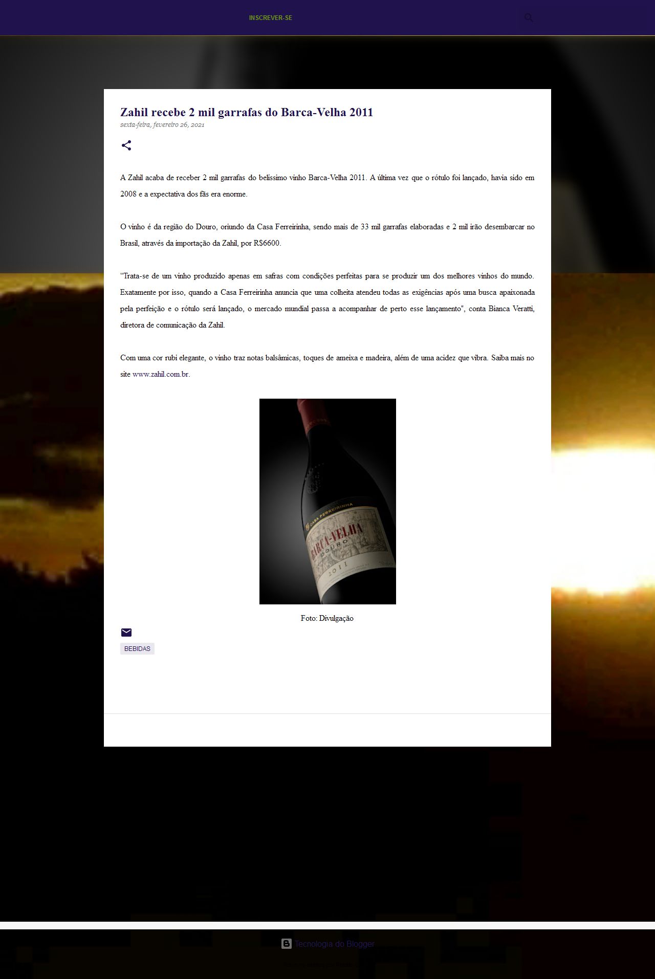Zahil recebe 2 mil garrafas do Barca-Velha 2011
