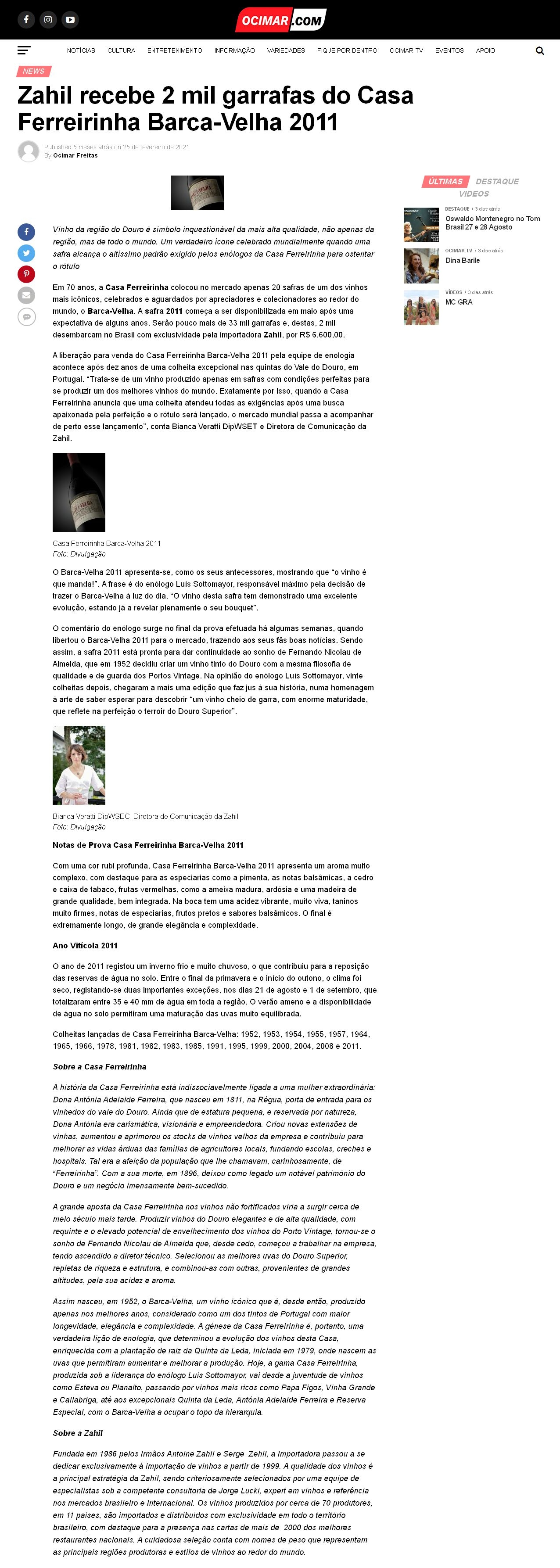 Zahil recebe 2 mil garrafas do Casa Ferreirinha Barca-Velha 2011 - Ocimar